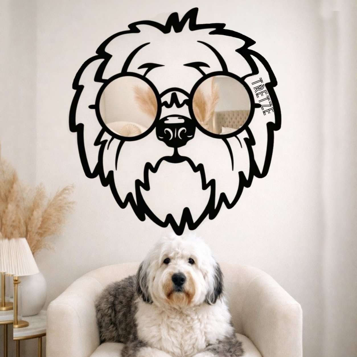 ¡Dale un toque diferente a tu hogar con este divertido cuadro de Perro Antiguo Pastor Inglés con gafas de espejo de 30 cm, 60 cm o 90 cm de alto!