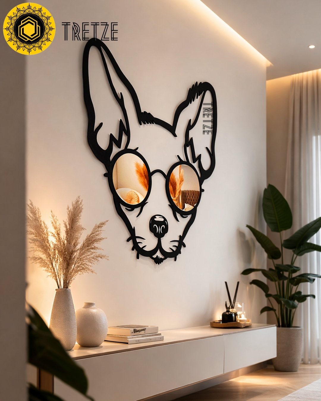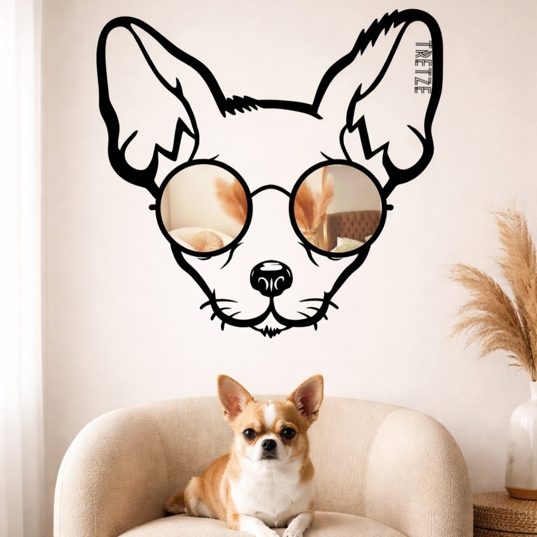 ¡Dale un toque diferente a tu hogar con este divertido cuadro de Perro Chihuahua (Cabeza de Manzana) con gafas de espejo de 30 cm, 60 cm o 90 cm de alto!