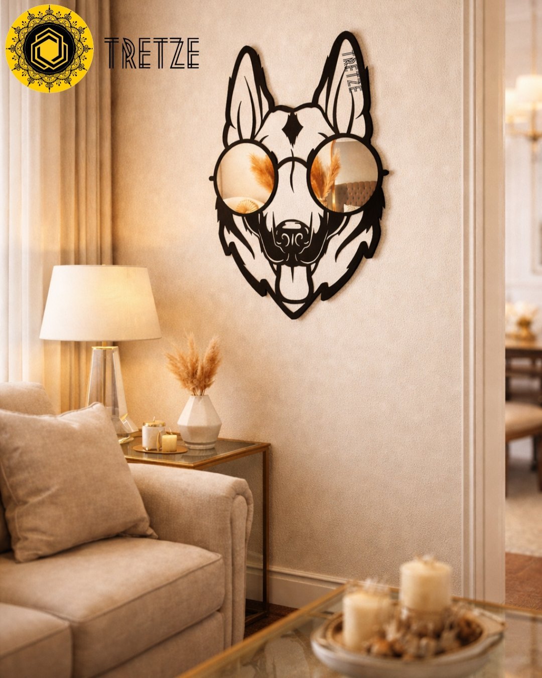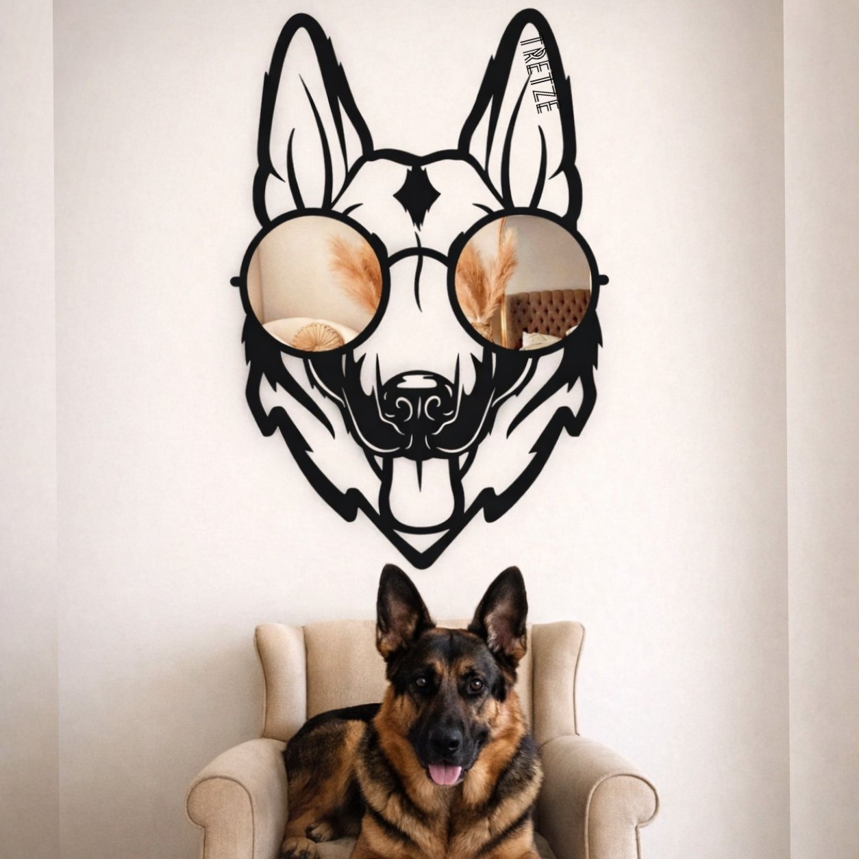 ¡Dale un toque diferente a tu hogar con este divertido cuadro de Perro Pastor Alemán con gafas de espejo de 30 cm, 60 cm o 90 cm de alto!