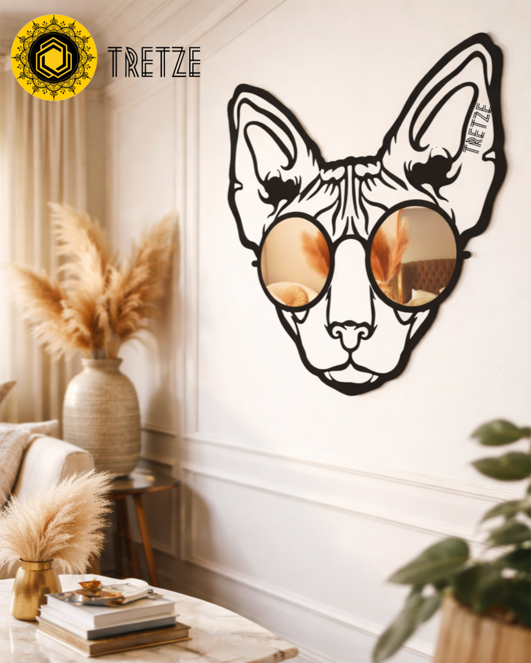 ¡Dale un toque diferente a tu hogar con este divertido cuadro de Gato Sphynx (Esfinge o Egipcio) con gafas de espejo de 30 cm, 60 cm o 90 cm de alto!