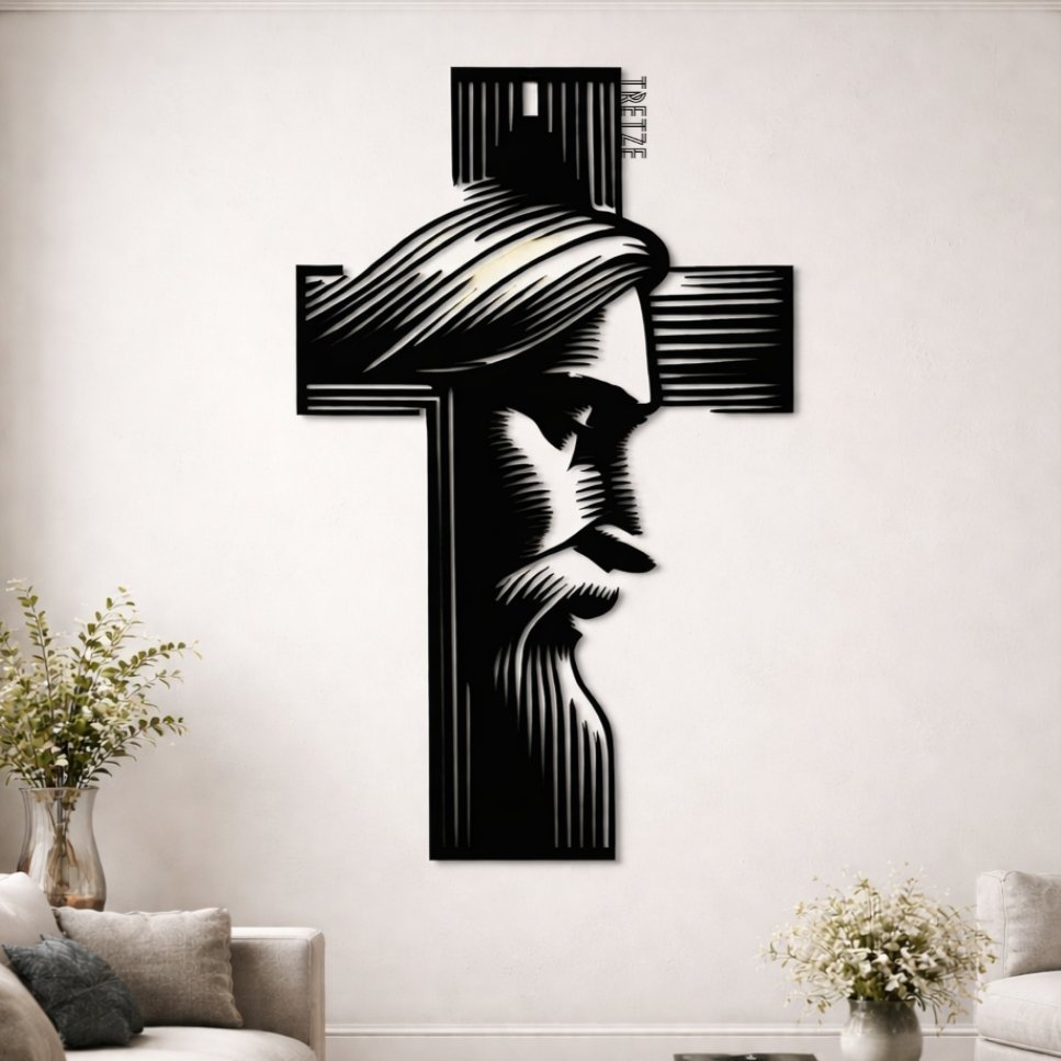 ¡Dale un toque diferente a tu hogar con este elegante cuadro de Cruz Rostro de Jesucristo de 60 cm o 90 cm de alto!