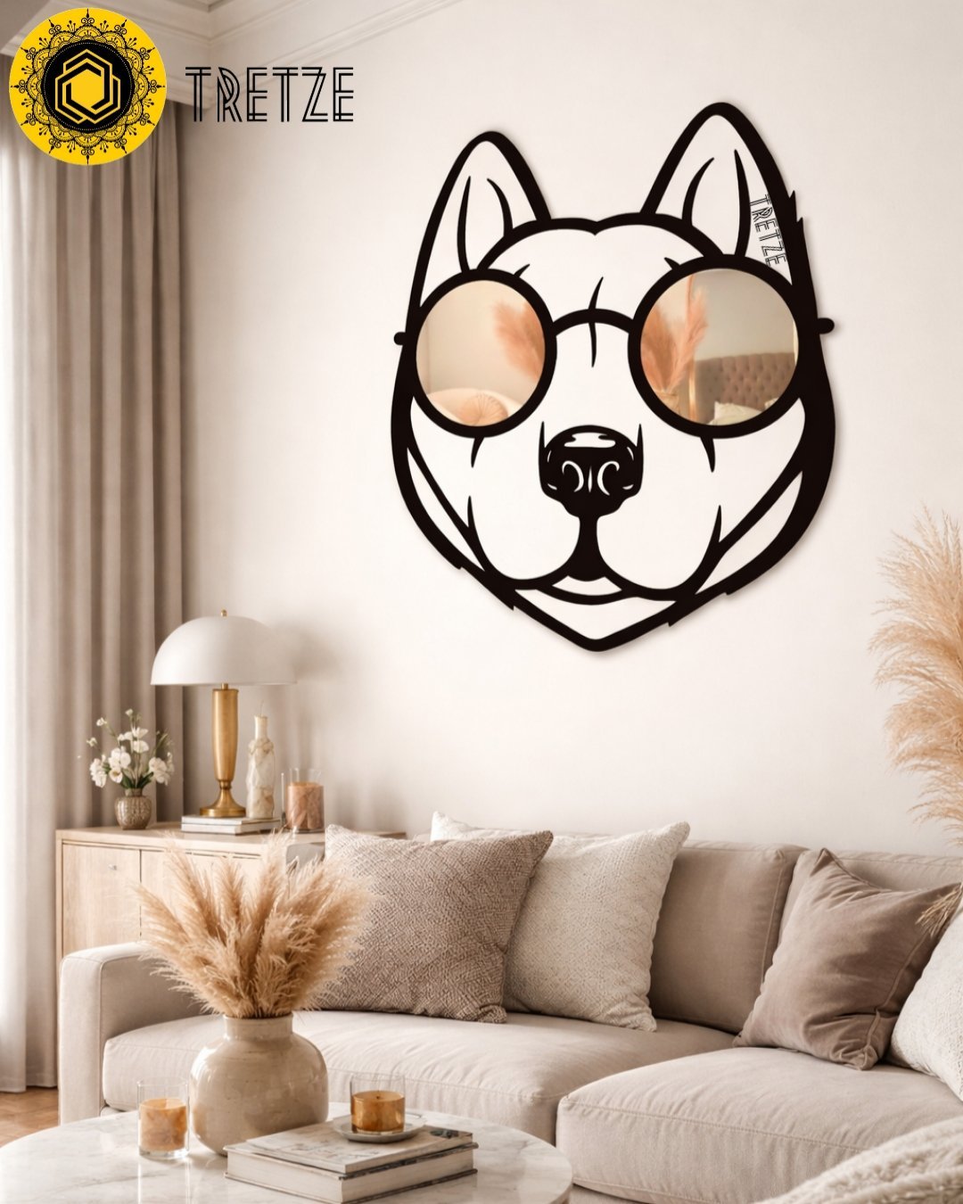 ¡Dale un toque diferente a tu hogar con este divertido cuadro de Perro Akita con gafas de espejo de 30 cm, 60 cm o 90 cm de alto!