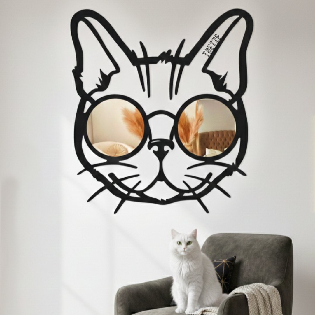 ¡Dale un toque diferente a tu hogar con este divertido cuadro de Gato Doméstico con gafas de espejo de 30 cm, 60 cm o 90 cm de alto!