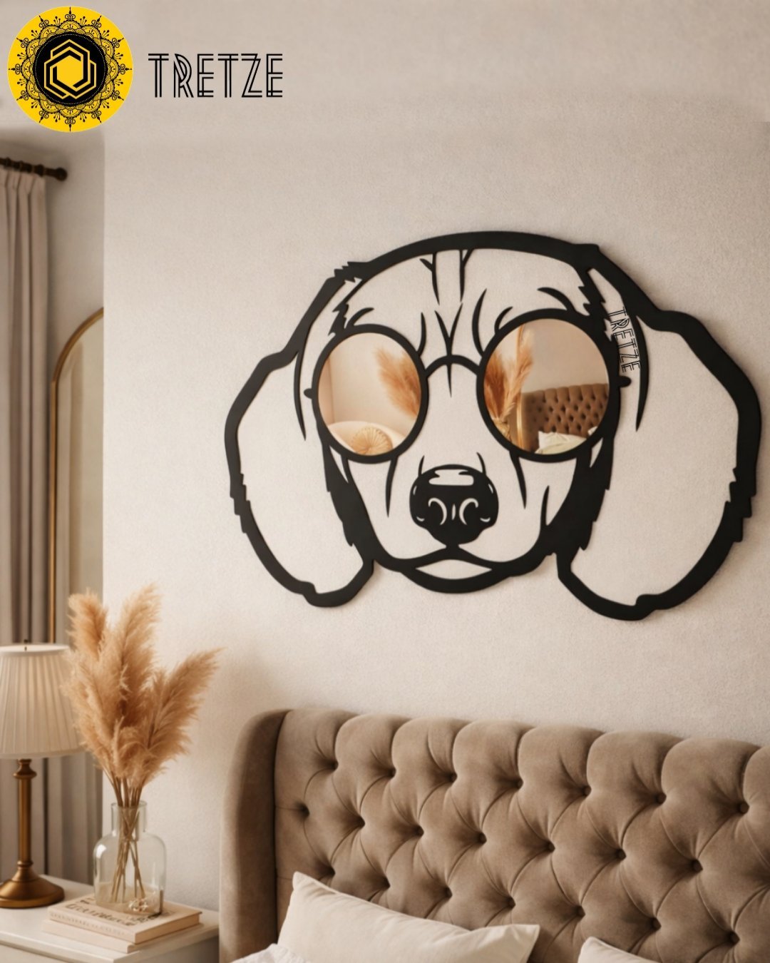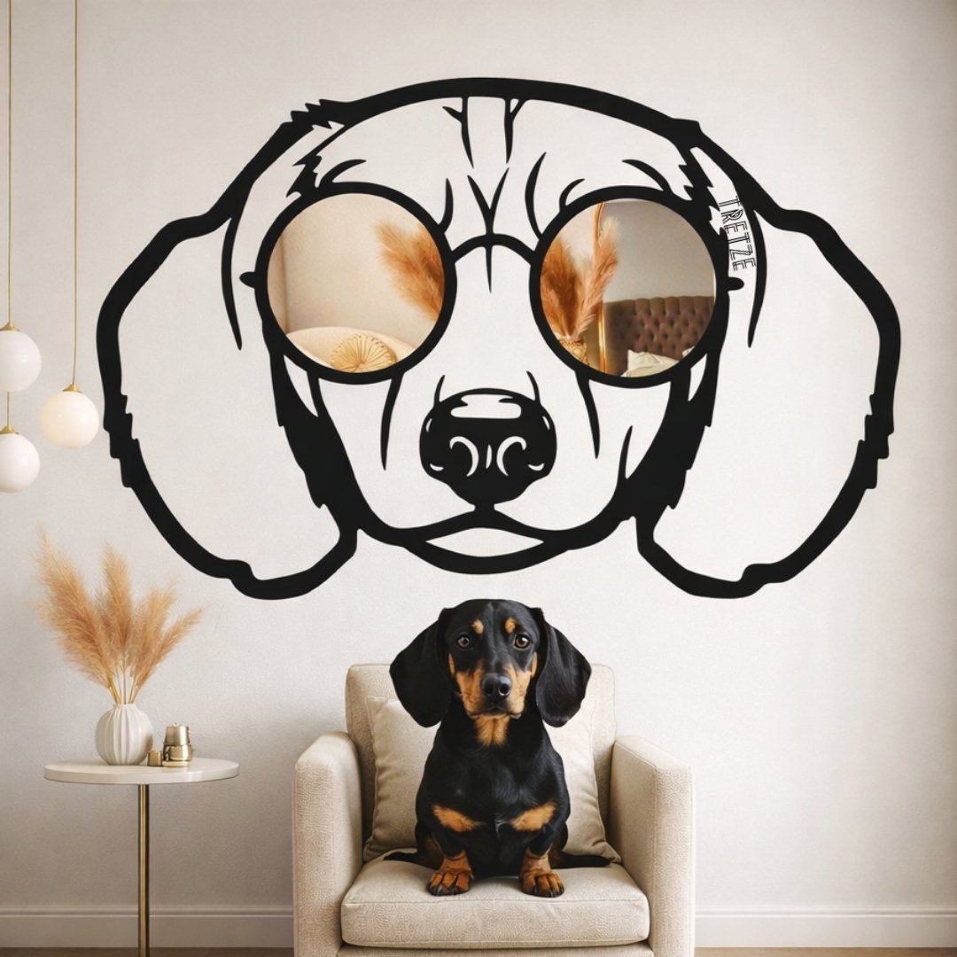 ¡Dale un toque diferente a tu hogar con este divertido cuadro de Perro Salchicha con gafas de espejo de 30 cm, 60 cm o 90 cm de alto!